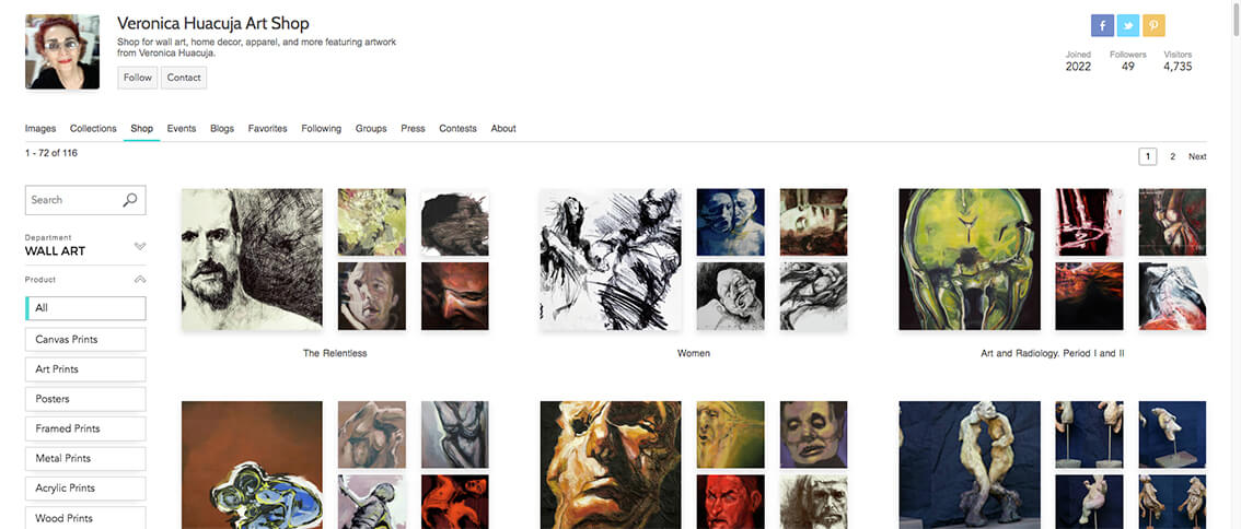 ART SHOPS I established my Art Shop within this site where you can find my artwork. If you're interested in an original artwork, contact me at art@veronica.mx Thank you for your interest. SummaryName Veronica HuacujaNickname (Veronica Huacuja ART SHOP)Website https://veronica-huacuja.pixels.comJob Title Plastic artist and online art teacherCompany Veronica Huacuja. Plastic artist and online art teacher for business groups and schools