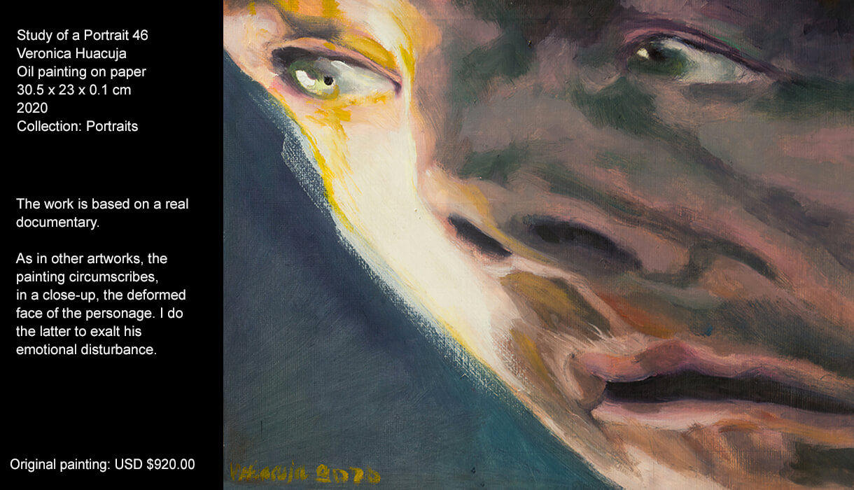 In my Portraits collection, I work special characters in borderline situations. This means that the artworks are dramatic and in most of them I try to grasp their frantic beauty.
