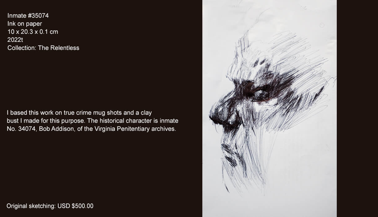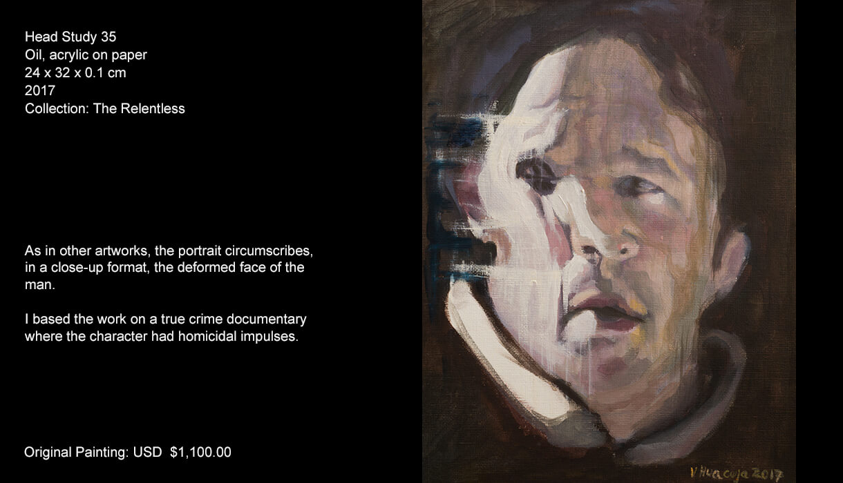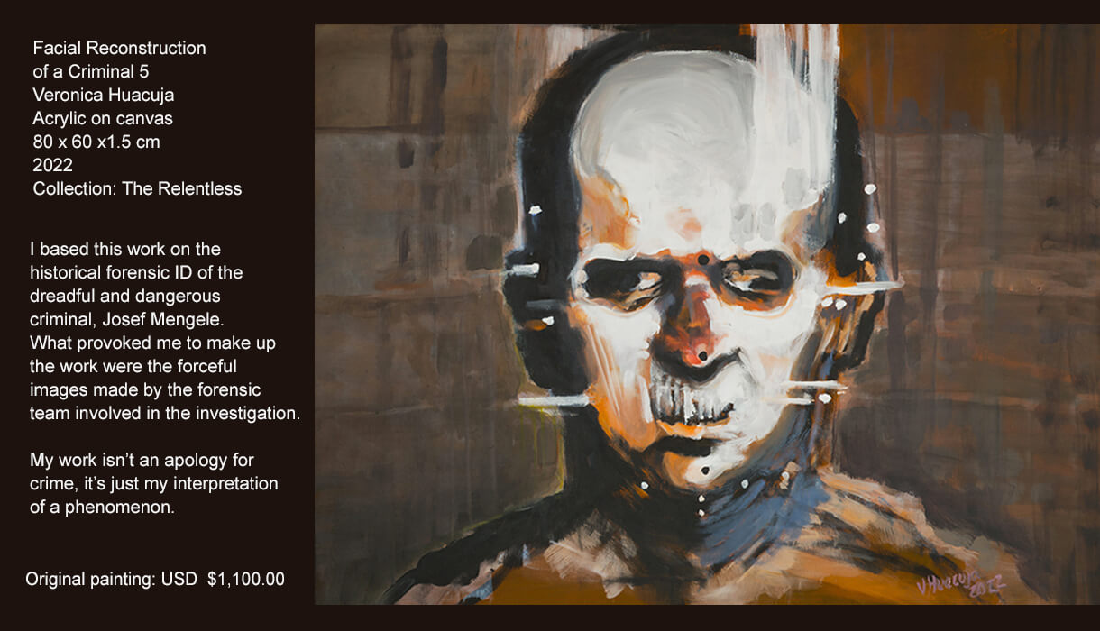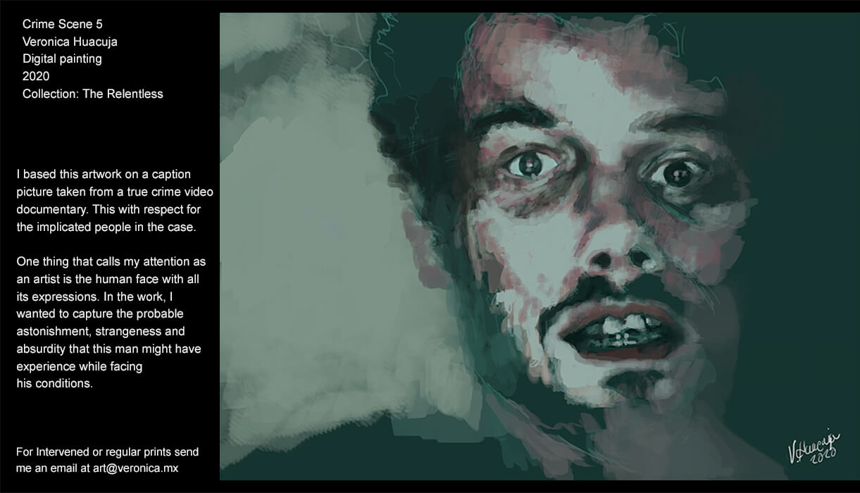 As a creator, one thing that calls my attention is the man and its precarious conditions. So, mental sickness, pathological behaviour, forensics… are some topics I explore in this series. I picture people that have social malfunctions and disorders which drive them to commit crime. The tragedy of their lives and the paths in which they have crossed in the lives of others are the impulsive elements that compel me to create this series.